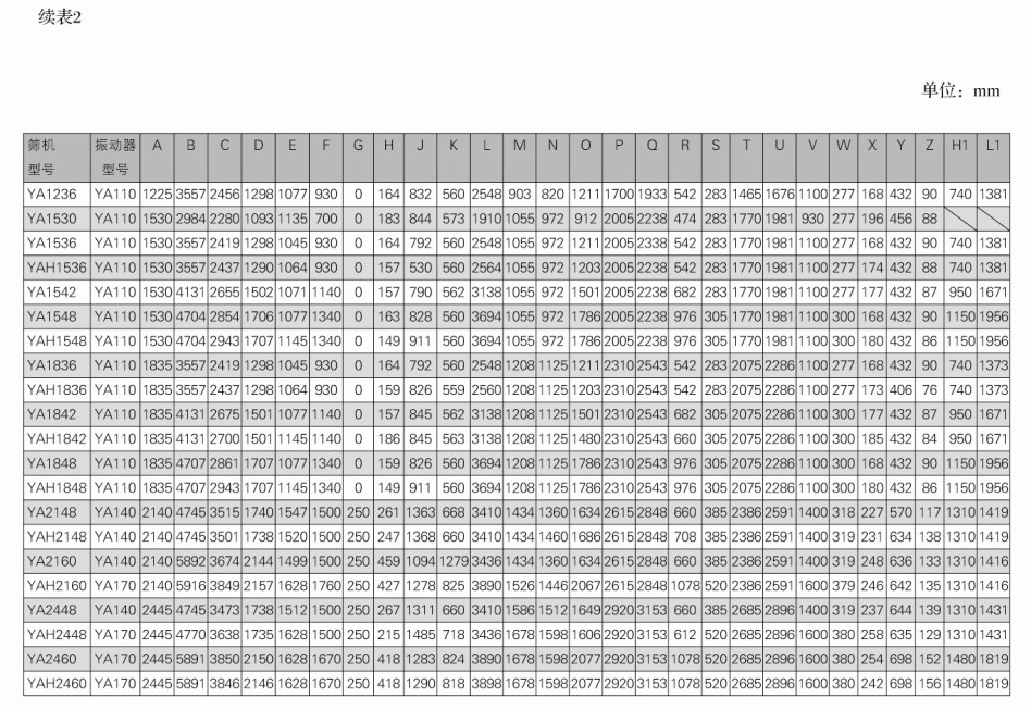 YA圓振動篩也稱為砂石振動篩,其運動軌跡為圓,全系列共有四十種規格。