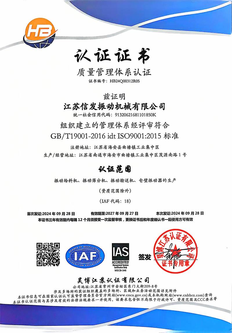 質量管理體系認證證書